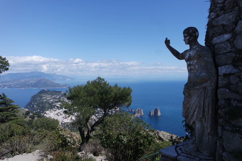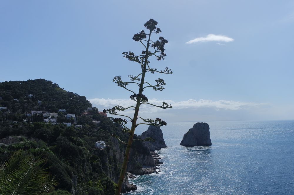 我在山上的花园坐了整整两个小时,晒太阳,充分享受了阳光,大海, Faraglioni和卡普里岛