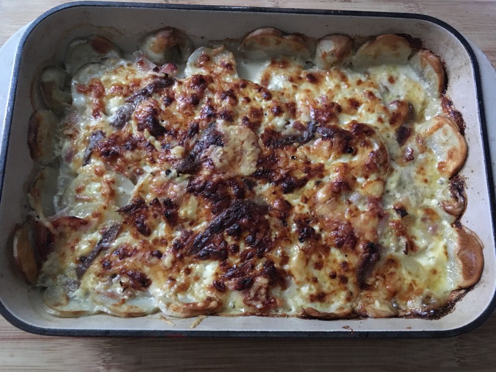 还有不到2星期就休假了,我们要回英国了,有好多的奶酪等着他,我要吃England 的草莓、樱桃和waithrose‘的小点心,marks & Spence 的巧克力。远离英国才觉得英国的东西好吃,回来又得胖,小子额头的痘痘还得长。吃完这顿gratin,估计他的痘痘要开花儿了:)