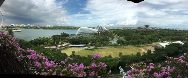 上次我就没说,人家自动给我upgraded。本来我订的是什么premium 海景房,结果一upgraded, 上了52层,orchid suite, 一个套间,房间大,放眼都是海,下面的garden by the bay显得小小的。我们美得不得了。
