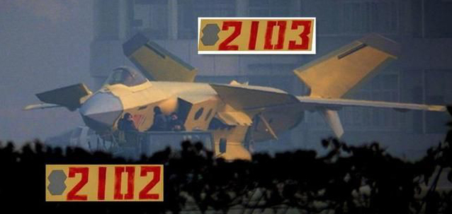近日中国网路上出现了歼-20战机的新动态。在今日刚刚曝光的照片中,最新2架被刷上四位编号的黄色歼-20清楚可见,疑似第2、3架量产歼-20曝光了自己的机号:2102、2103号机!这已经足以说明歼-20战斗机已经投入了量产的!