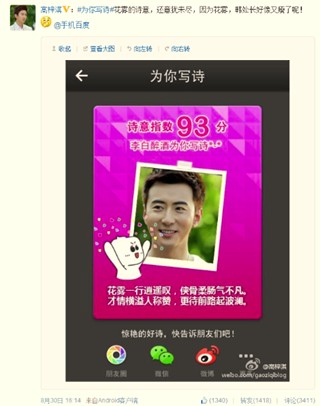 手机百度为“王力宏”写诗