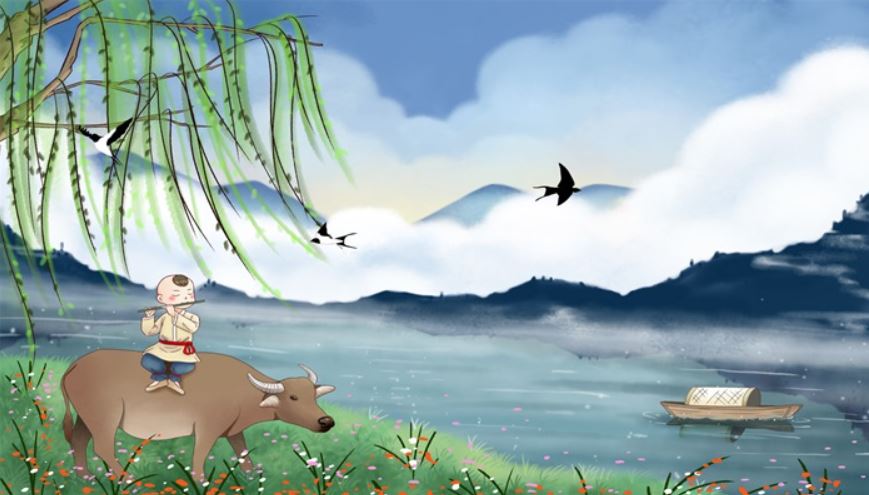 诗中描述的是多么悠然烂漫美丽的图画。不知道现在的中国农村,是否还会有孩子去放牛。机械化的生产,大多数地方可能都不用牛耕地了吧。