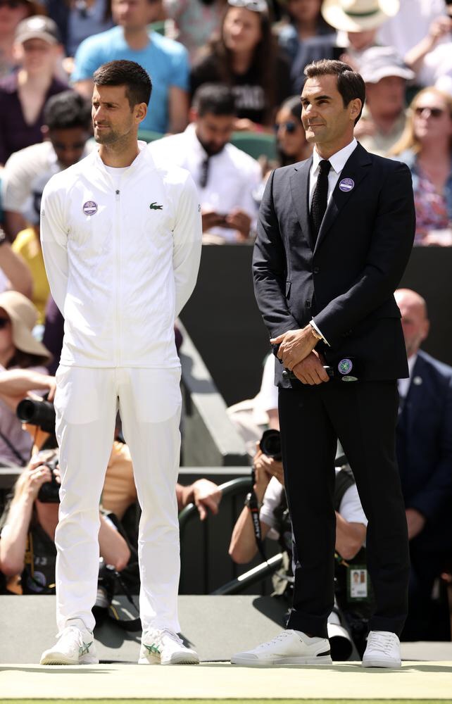溫網中央球場100周年紀念日,不少前冠軍都出席盛典,從一屆冠軍到八屆冠軍,最囑目的當然是老費,8屆,壓軸出場,最多歡呼聲。