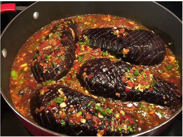 日思夜想要学会做鱼香茄子,城内突现宝典秘籍,令十字花刀切半个紫茄子。看完成品照片(如下),旋即决定放弃。理由是... ...