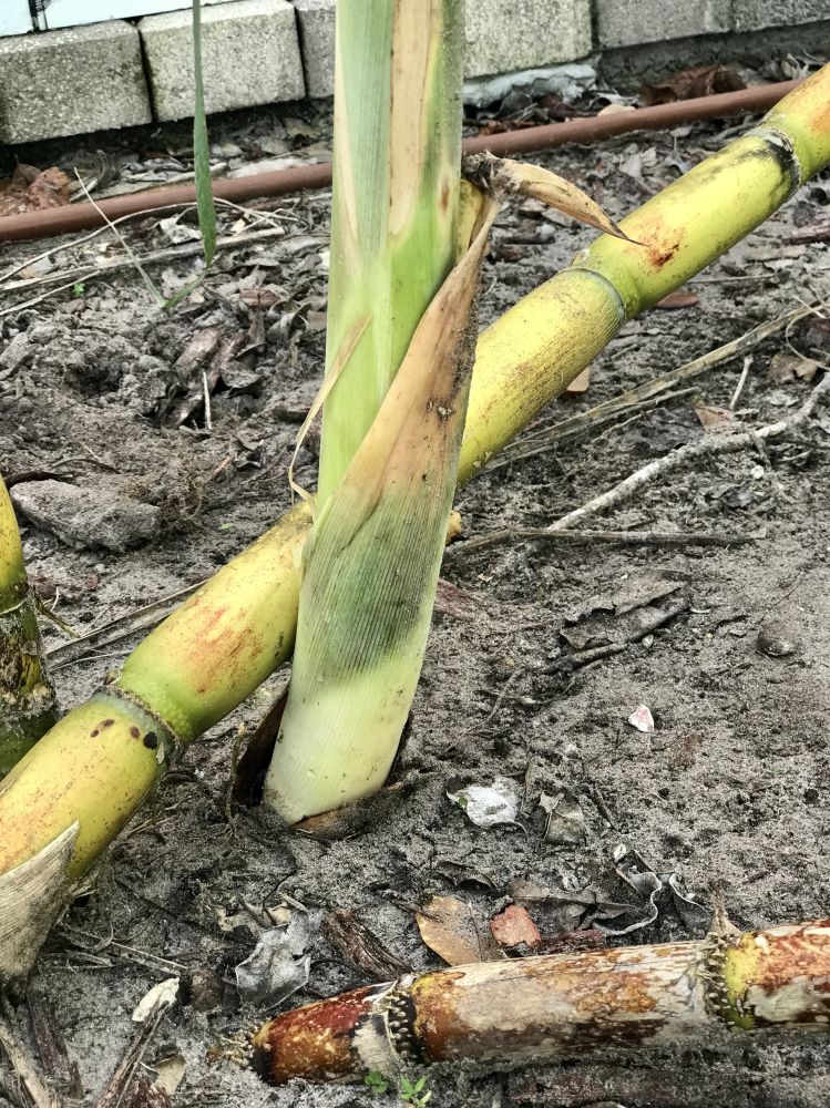 每年都有新的甘蔗冒出来,我也基本上没怎么管理它们,就是隔段时间去剥一下叶子。