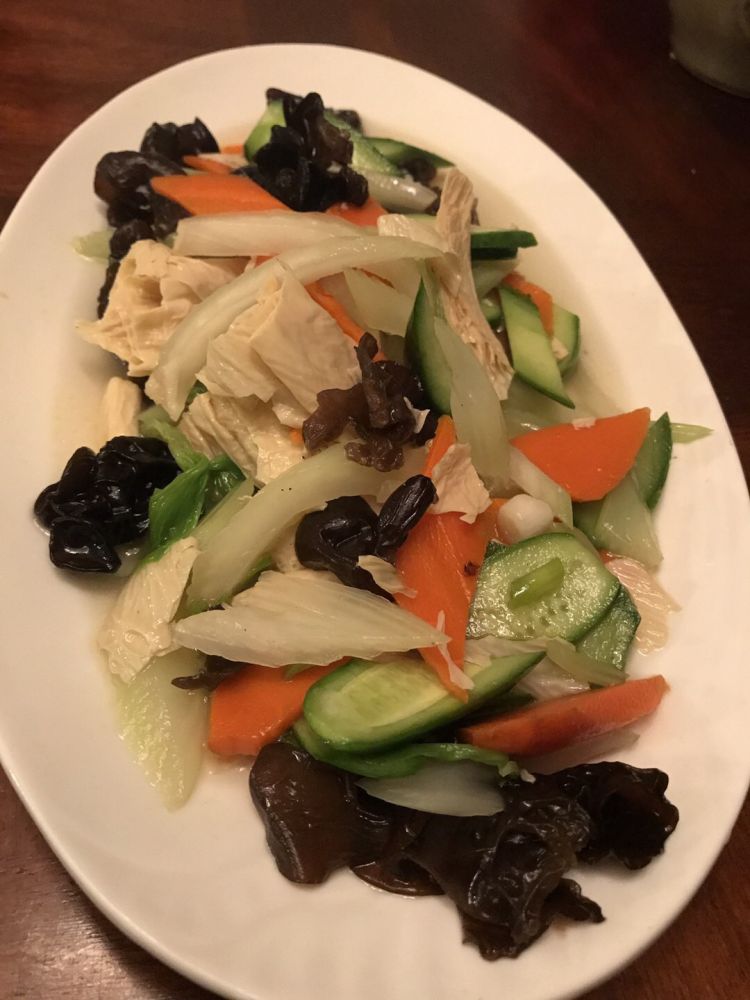 但是对于我岳父做的这个凉的什锦蔬菜就没有感觉,都是领导一个人吃的,后面她留了一点让我吃,我说不想吃,让她全部消灭。