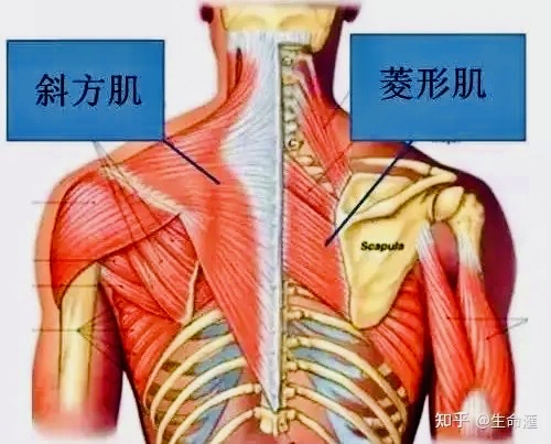 还有这个菱形的形状,应该就是菱形肌或者斜方肌形成的吧