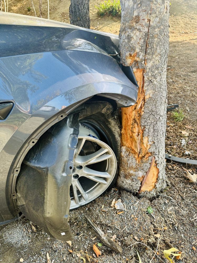“我太太本周自驾Tesla发生严重事故。当时早上8时FSD状态下车打了转弯灯要进公司停车场,而车却仍然朝前开,因此手接管拐进停车场。这时车实然发飙,自己往前乱冲,一长段后冲过停车场的灌木隔离带,直到撞上外面一颗树才停下。怪异的是停下的角度並不是撞的方向,而是约120度的反方向。万幸太太没有受伤,也没有碰撞到其他人和车。以前听到Tesla的事故觉得很遥远,直到发生在自己身上或身边。所以提醒一下各位同学若使用FSD还是要很小心。它和Tesla的功能看来远非完美。顺祝各位平安。”
