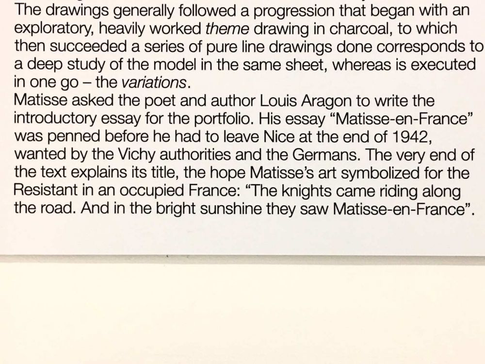 说来也怪,马蒂斯的住处就在美术馆后面的马蒂斯花园。房子周围有很多台阶,直接通往这些残留的古罗马遗址。在遗址中间造屋子是一种什么样的心理?图五是一段写的很美的话直接copy下来贴上。马蒂斯用他的方式来表达他对战争的抗议,与夏加尔相比马蒂斯温和许多。夏加尔因为身世复杂,痛苦更深刻于是表达的方式也厚重,深沉。另外补充一点夏加尔美术馆是国家级的,而马蒂斯是地区级的,差别从各方面都能表现出来。马馆没有耳机,语言说明大部分只有一种语言,整体作品的展示和陈列对比等都一目了然。