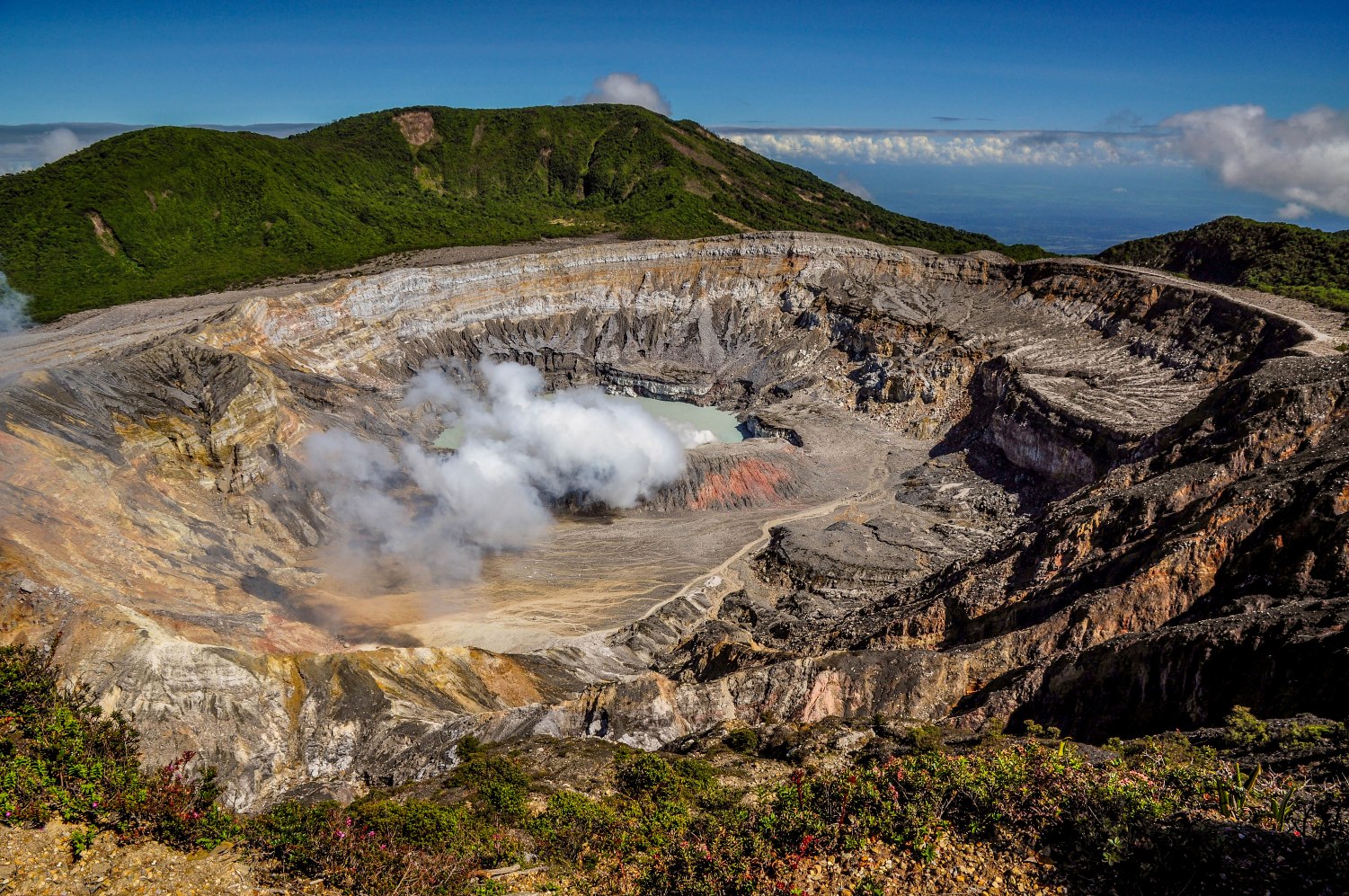 在哥斯达黎加看了个休眠的火山口。样子比较狰狞。 想起2006年底去夏威夷大岛逛休眠的火山口,贴上来对比一下。那时我只有个很简单的傻瓜机。凑合看吧。 这是个巨大的火山口,人可以走下去。 一个相当完整的小火山口。 这个火山口的缝隙中不断地往外冒蒸汽。