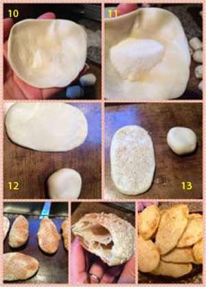 8. 按一下成圆形 9. 抱歉,漏了 10. 擀开,中间厚四周薄 11. 包入一小勺糖 12. 再擀开 13. 沾水放上芝麻