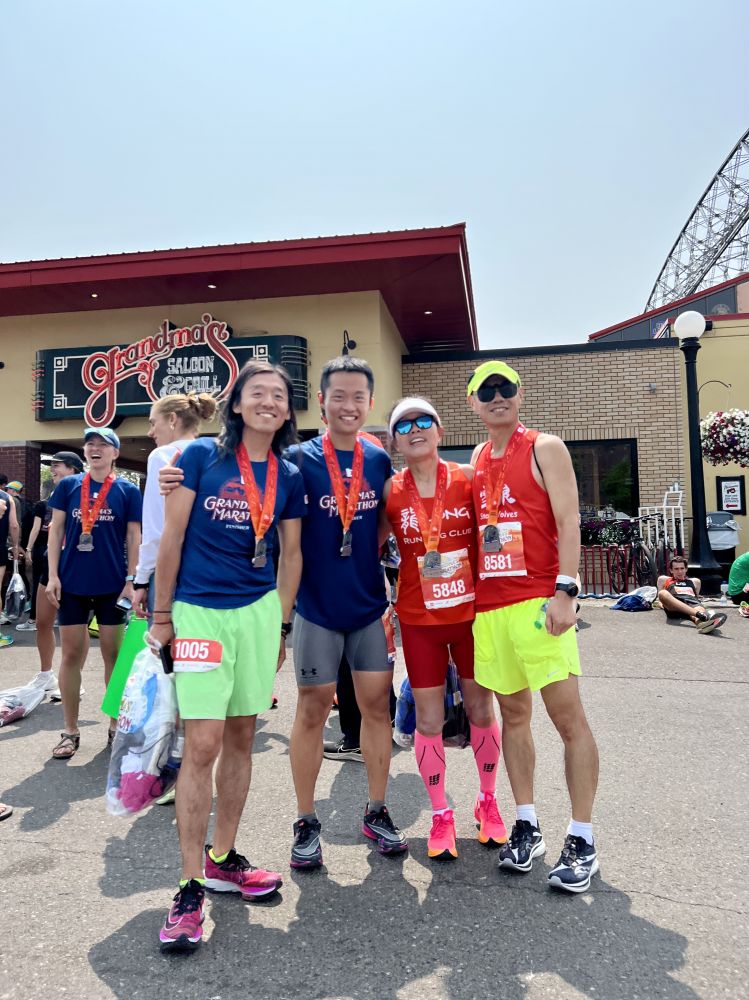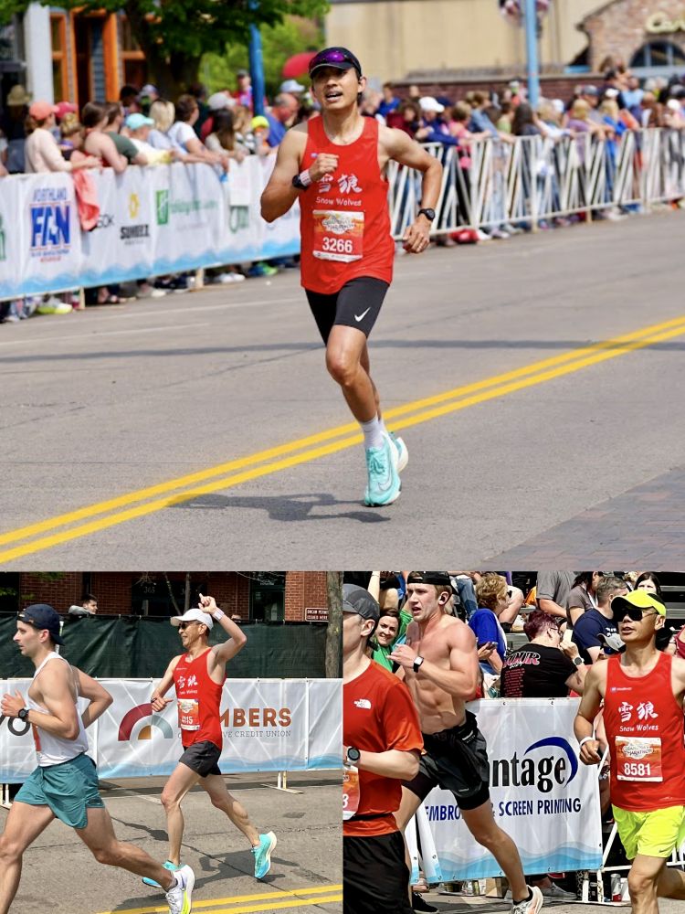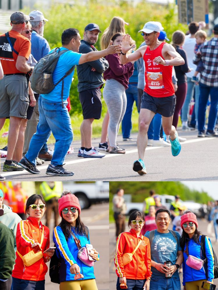 我这次参赛的感受是奶奶/外婆马拉松主办方赛事组织得很好(但事先找住宿挑战大,主要是城市小),参赛者总体水平高(平均完赛时间4:13:12),赛道线路风景秀美,小城charming,人们友好。。。尽管赛道上意料中的起伏坡、超乎意料的路面倾斜(虽然事先听说,但没想到是如此)、顶风(好在风力不太大)、以及后半程温度较高增加了挑战,并且跑出的成绩(3:41:05)是我4次马拉松中的倒数第二成绩,但这次是我跑过的4次马拉松中最愉快的一次。世界六大马皆快于3小时的圣路易斯跑友章军在我赛前给的指导“掌握好节奏”以及明尼苏达州华人著名跑团雪狼跑友们(参赛者、摄影师、啦啦队)赛前分享和比赛过程中沿途在多处拍照加油是重要的原因。雪狼在6、9、16、23、和26英里处的摄影与加油使我在整个参赛过程充满了期待,见到他们很亲切,与他们的互动很欢乐。。。感动雪狼跑友及他们的家人朋友们的付出,非常感谢他们!
