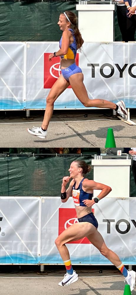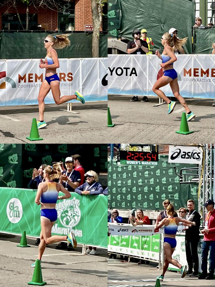 照片13-14: 冲刺终点的女子前三名,时间分别是2:25:55, 2:26:56,和2:27:38。