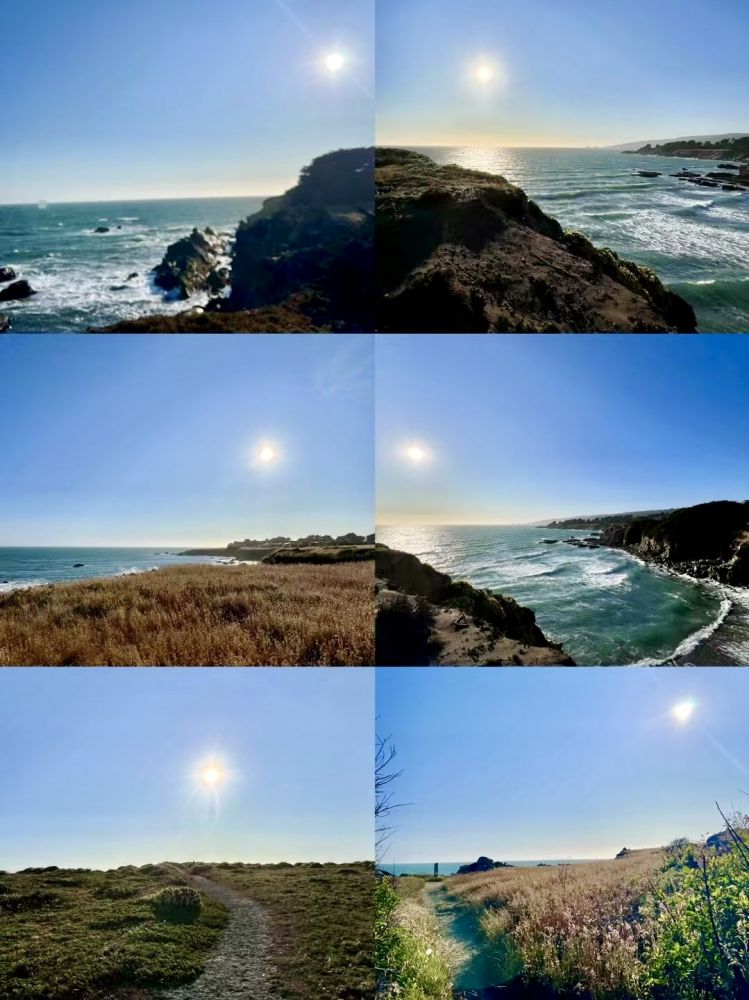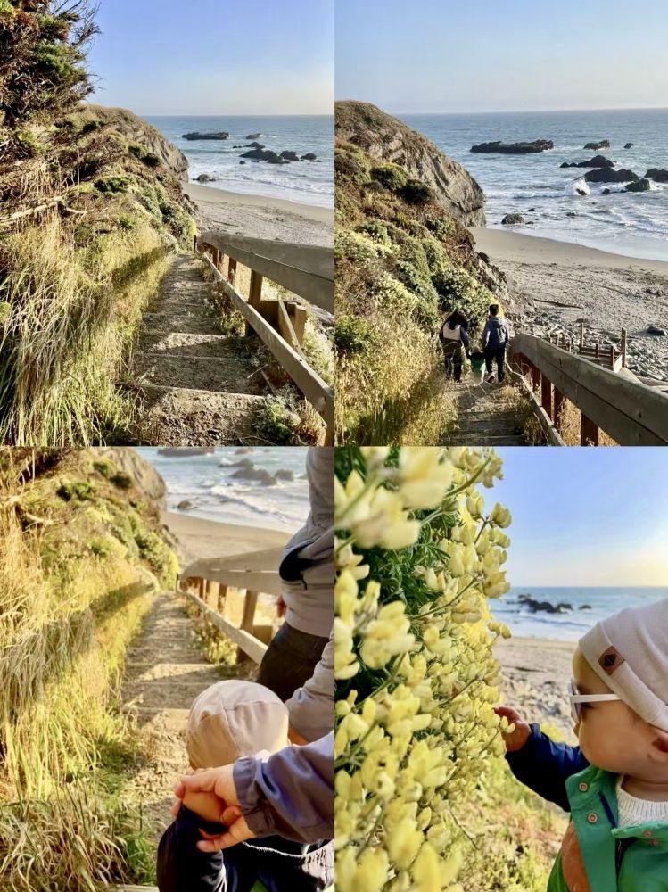 (2)外婆篇 据相关介绍,位于海洋牧场的Bluff Top Trail(悬崖顶步道)是跑步的好去处。这条全长3英里(约5公里)的步道始于著名的Walk-On Beach(步行海滩),沿着海边蜿蜒通往Cualala Point(库阿拉拉海角);沿途可欣赏到壮丽的海景:一望无际的水面、波涛汹涌的海浪、壮观的岩石峭壁、僻静的海滩、瑰丽的日落。。。