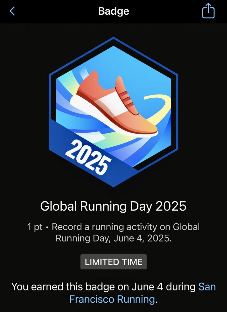 照片1: 获得Garmin表发的全球跑步日运动徽章:-)。
