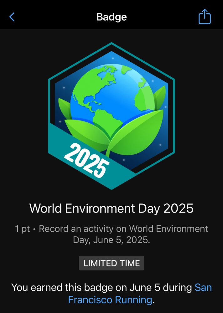 照片2: 获得Garmin表发的世界环境日运动徽章:-)。