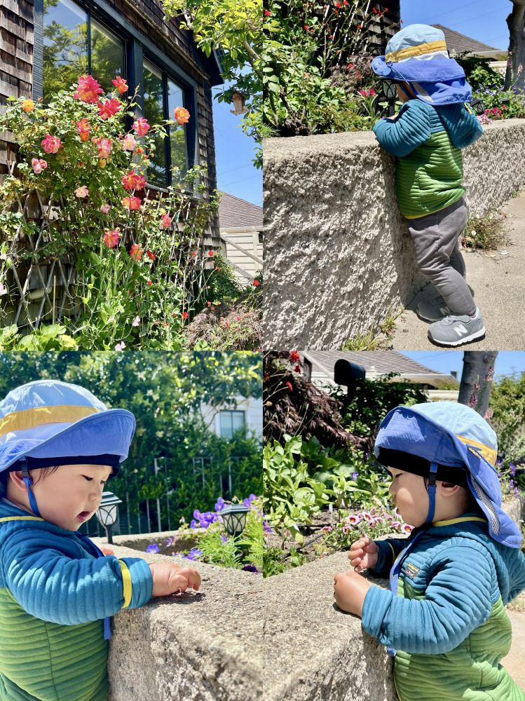 照片5: 宝宝象小蜜蜂一样在花园停留,不过,与蜜蜂不同的是宝宝对数小泥石更感兴趣:-)。