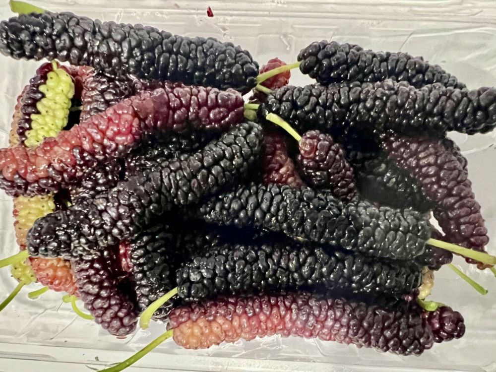 我家后院的Pakistan mulberry 种下后,等了5年才结果,很甜,但是没有你们摘的那么长。