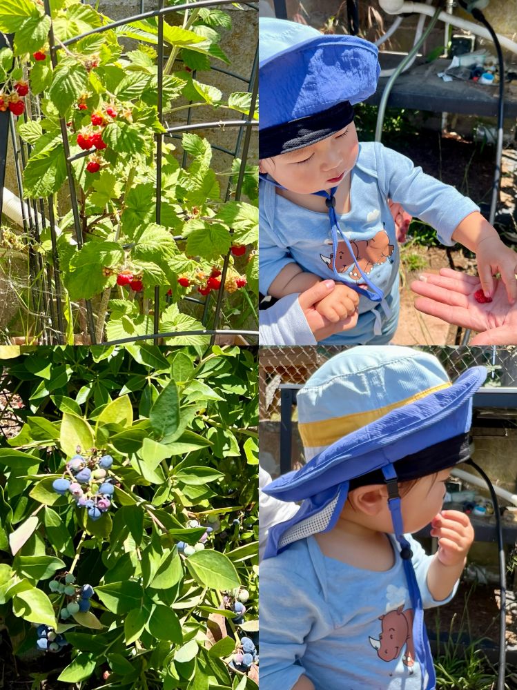 照片10: 宝宝品尝果园里新鲜的山莓和蓝莓。