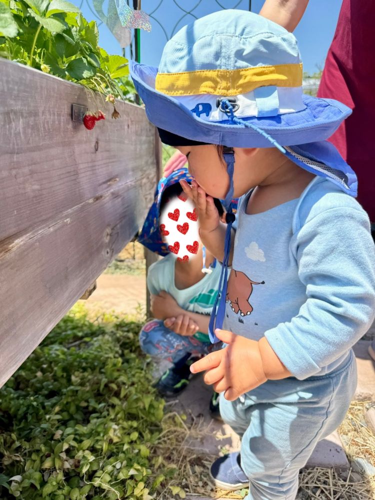 照片14: 小哥哥奥仿佛在问宝宝“你会将我家的草莓都吃光光吗?”:-)