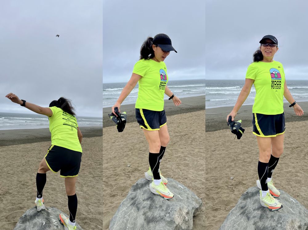 照片2: 按照惯例,起跑前站石伸展以及与大海合影。