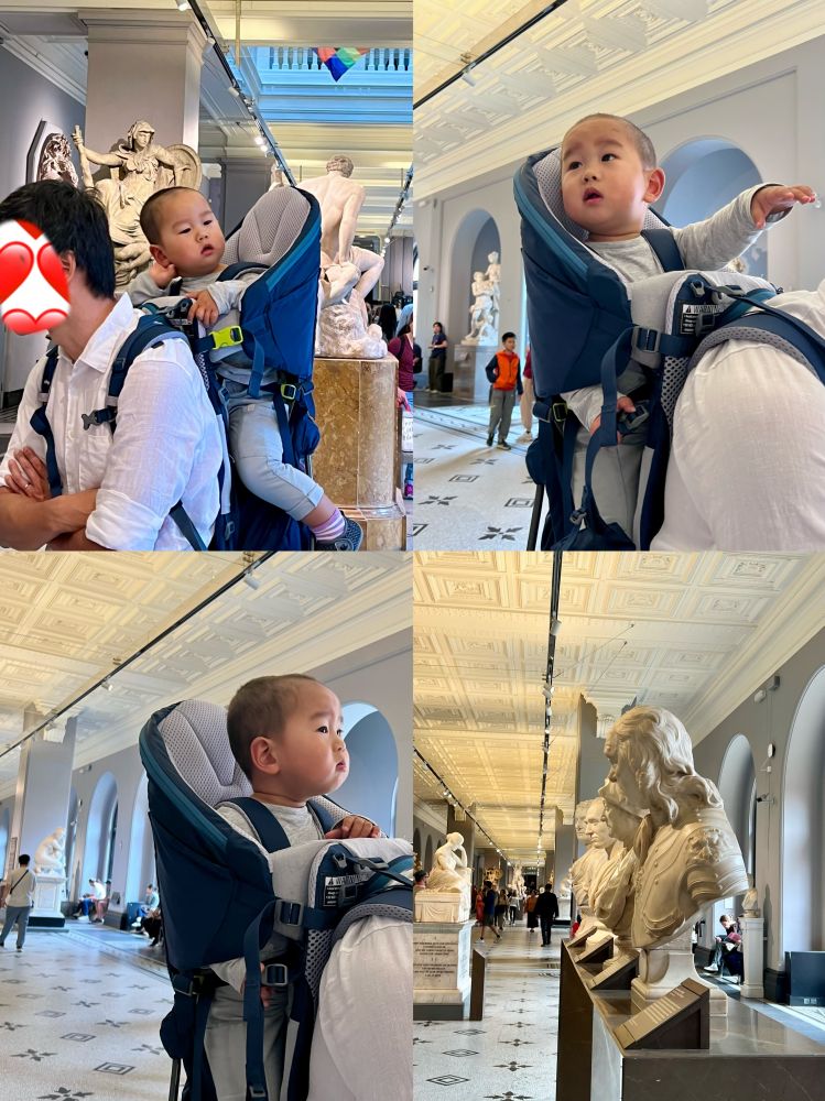 照片10-12: 宝宝在雕塑艺术展厅看得津津有味:-)。
