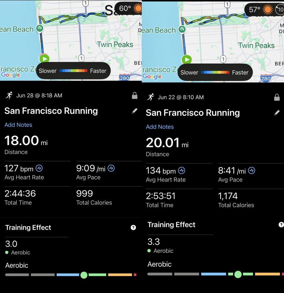 照片1: 本周末的18英里长跑不仅比上周末的20英里长跑慢了许多,而且跑得很具挑战,双腿不给力,心率也上不去。好在我不与自已的身体状况对着干,而是聆听身体发出的信息,悠着跑,所以,没有痛苦挣扎,但没有以往的欢喜快乐与兴奋,而是平平淡淡地跑完了18英里。