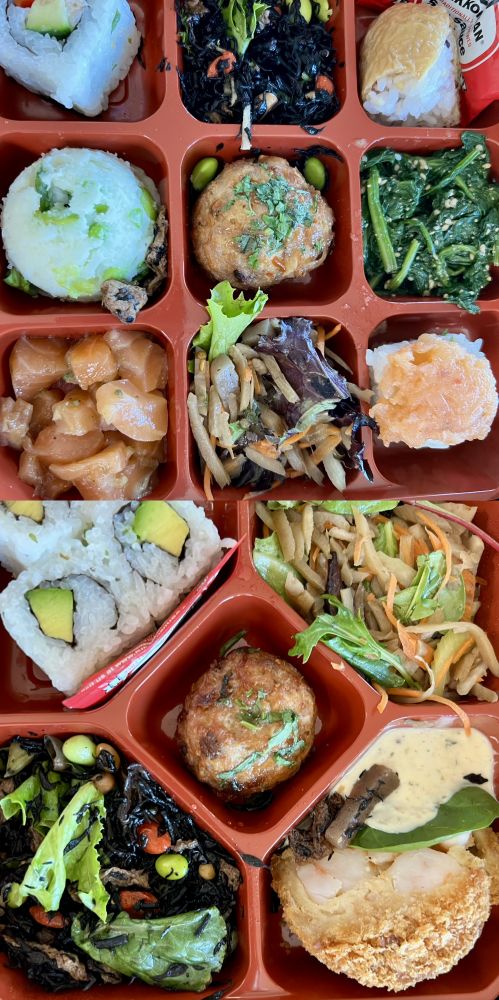 照片9: 因为听我说跑得很有挑战,先生为我和家人在网上从一个日本餐馆点了9宫格等日式午餐为我加强营养。非常感谢先生的爱护和好意,但他点的这个日式餐比女儿以往从另一个日本餐馆点的日式餐差远了,尽管价格相似;不过,我们都感谢了他的好意,而他也从女儿那里要了另一个餐馆的信息,以备不时之需:-)。