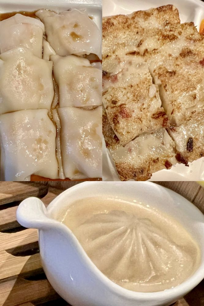 照片10-13: 星期天上午全家在旧金山著名的粤菜馆俏龙轩(Dragon Beaux)品偿粤式早茶,这些饮食带给我许多安慰:-)。