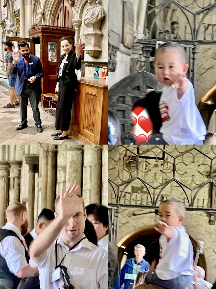 照片27-28: 在参观游览过程中,22个月大的宝宝充满了好奇,兴致勃勃,多位工作人员被他的稚嫩神情逗乐了,与他互动,他还主动挥手与工作人员告别。