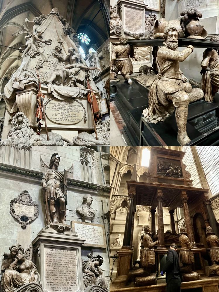 照片15-17: 除了举行常规宗教敬拜、君主加冕、皇家婚礼等重大仪式活动,这座教堂里还安葬着多位英国杰出人物,其中包括一些帝王将相,有些是逝者的巨大石棺和豪华墓碑(照片15),有些逝者的墓甚至拥有一个精美的小教堂(照片16),有些则是挂在墙上的逝者纪念碑或胸像(照片17)。