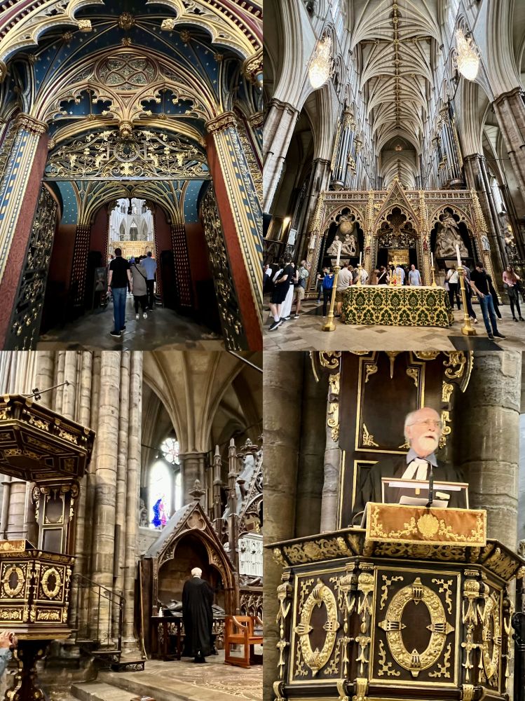 照片13-14: 我们恰好遇到教堂里的牧师在时钟敲响正点时祈祷(照片13);威斯敏斯特教堂至今依然是一个具有敬拜的教堂,这是2018年8月宝宝外公到伦敦出差在此教堂参加礼拜时的程序单(照片14)。