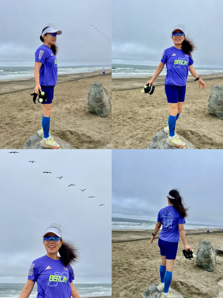 照片1: 昨天到达海边停车场大约8点50分左右,很久没来这里了,但 按以往惯例,跑前我站石头做伸展以及与大海合影:-)。因为昨天是著名的柏林马拉松举办日,我特地穿了去年参加柏林马拉松的完赛服致敬和祝福柏林马拉松参赛者们。