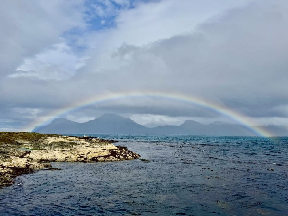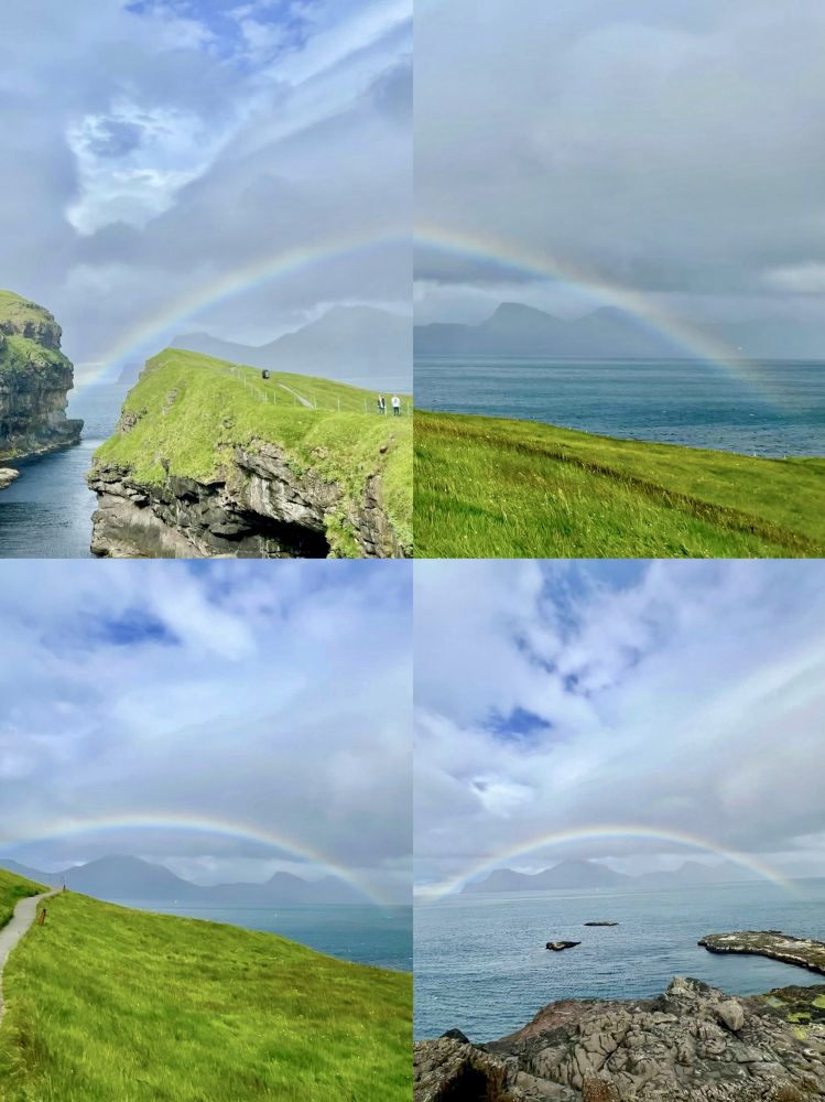 照片10-13: 在这个美丽宁静的偏远村庄没有商店或餐馆。这里唯一的咖啡馆很小,每天只营业几个小时。因此,我们在租住的民宿用从首都托尔斯港买来的食物准备晚餐。宝宝妈妈正在做饭的时候,从厨房窗户看到了一道美丽的彩虹。她停下手头的活,全家一起出去追逐彩虹:-)。