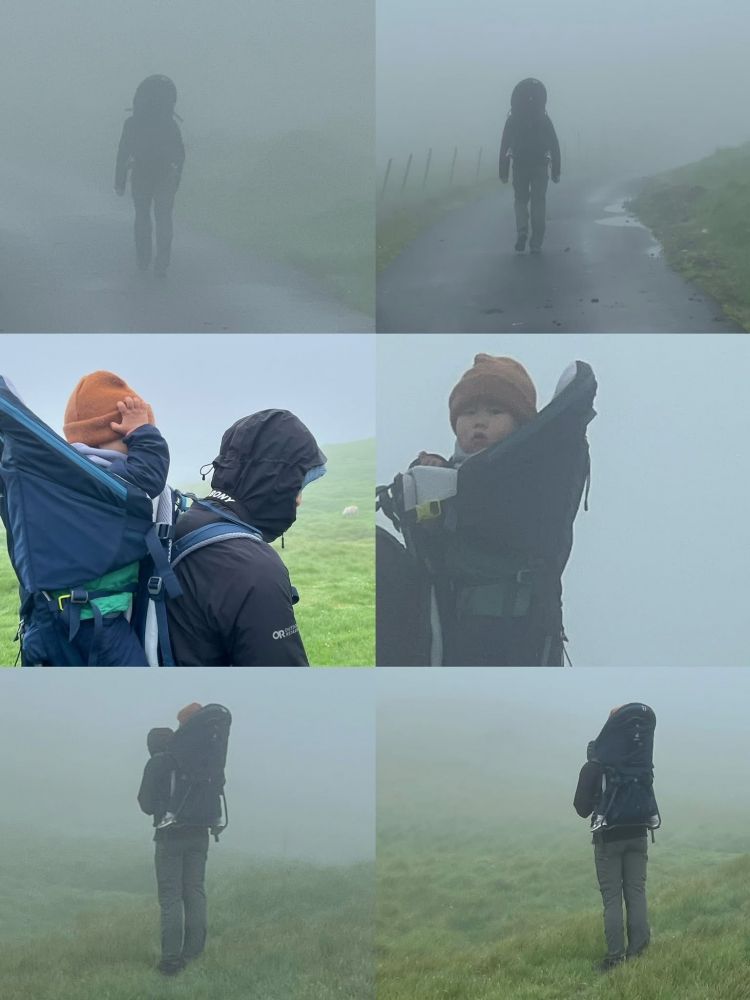 1. 在迷漫大雾和蒙蒙细雨中的徒步远足