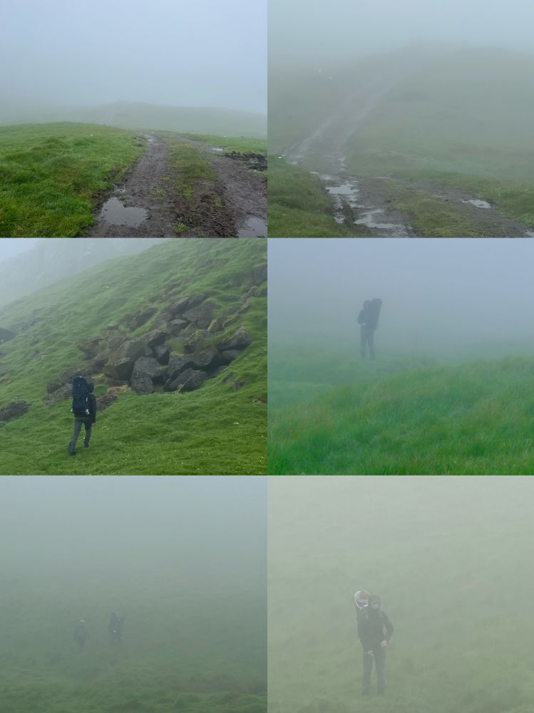 照片6:沿着延绵起伏的山丘小径徒步,雾气越来越重,能见度越来越低;雪(雾)上加霜(雨)的是不久开始下小雨,能见度更差。