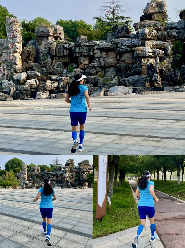 照片5-7: 回到故乡扬州休整了几天之后的首跑,公园里风景宜人,并且还遇到了一些运动健身团队。