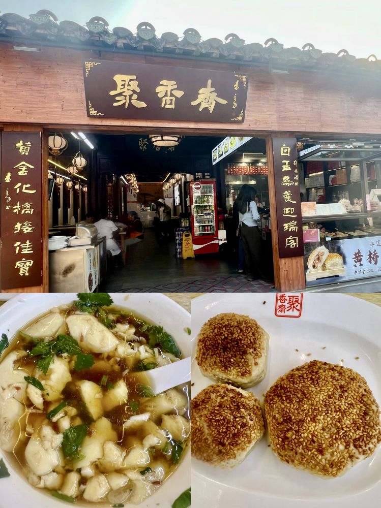 照片5: YT和我在东关街的聚香斋吃了这个店著名的豆腐脑和黄桥烧饼,边吃边聊,非常开心。