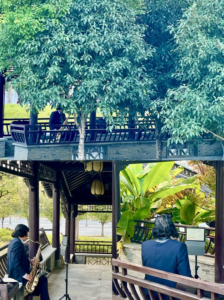照片13: 公园里乐声缭绕,吹(萨克斯管)、拉(二胡)、唱(京剧、扬剧、民歌等),一应俱全。我对几位吹萨克斯管的人印象尤其深刻,与他们交流后得知他们没有一人是音乐专业人士,都是退休后开始学习吹萨克斯管和相关音乐,纯属业余爱好,令我佩服。