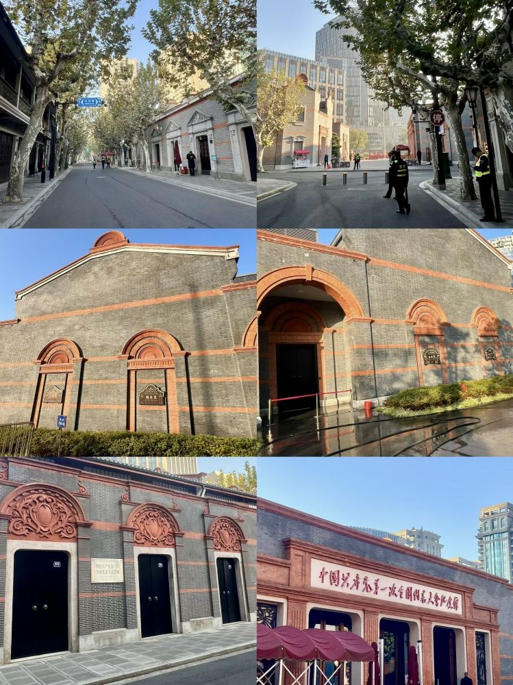 照片13-15: 次日上午8点多钟漫步新天地,南里不少的国际品牌精品店、特色餐厅、时尚酒吧、咖啡馆等商家己经有圣诞装饰(照片13);而北里(North Block)则主要保留并改造了传统的石库门建筑(照片14-15),氛围比较怀旧,其中包括了中共一大会址以及相关纪念馆,那里的保安比较严格,三步一岗,五步一哨。漫步其中,一边是资本,一边是共产,有点儿梦幻。