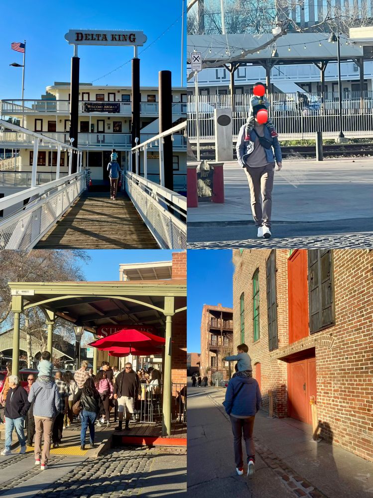 我对水边城市或有河流穿越的城市有特殊的感情,我出生成长的故乡扬州就是一座水资源丰富的城市,包括穿城而过的古运河。有水的城市有独特的灵气。在加州州立铁路博物馆参观游玩了3个多小时,非常尽兴愉快;接下来,我们在三块馒头河畔(Sacramento River )老城区吃吃逛逛的时间也非常惬意愉悦。