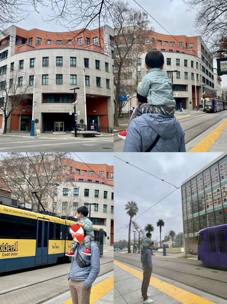 照片7: 离议会大厦不远处是加州州务卿楼和劳工部楼,特别喜欢火车的宝宝非常开心看到一辆火车从州务卿楼方向驶来,从劳工部楼前而过。