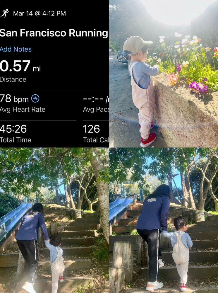 照片2: 昨天圆周率日,宝宝外公和外婆我带着宝宝散步庆祝:-)。