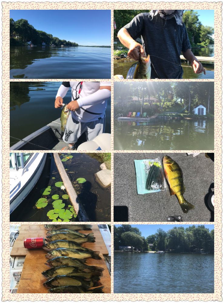 侄子的儿子我们戏称为船长,竟然钓了一条大perch,头回见,赶紧记录在案。孩子还说,只是和我们钓鱼,渔获往家拿,如果他自己钓鱼,已经把钓到的鱼在放回湖了了。