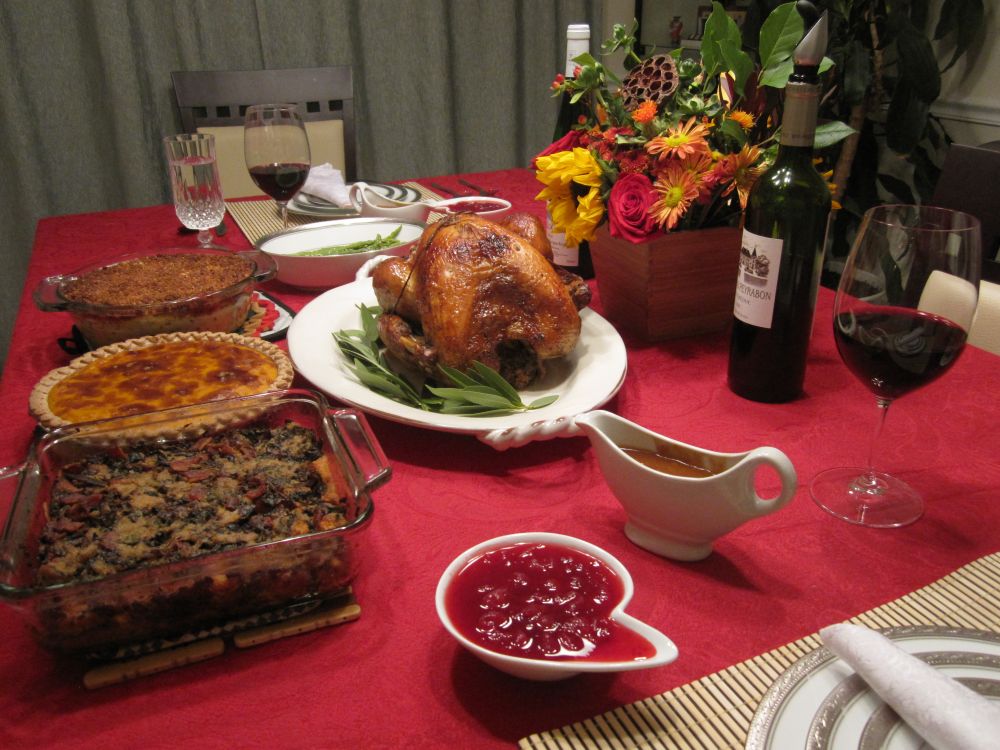 我们买的是Amish的传统的火鸡,九磅多一点。虽然价格稍高一些,但味道很好。配感恩节晚餐最常用的葡萄酒是Pinot Noir(黑皮诺)。当然Syrah(澳大利亚的Shiraz)也不错。如果你喜欢白酒,德国的riesling(雷司令),新西兰的Souvignon Blanc都行。我们是红白都有,在不同时候喝。
