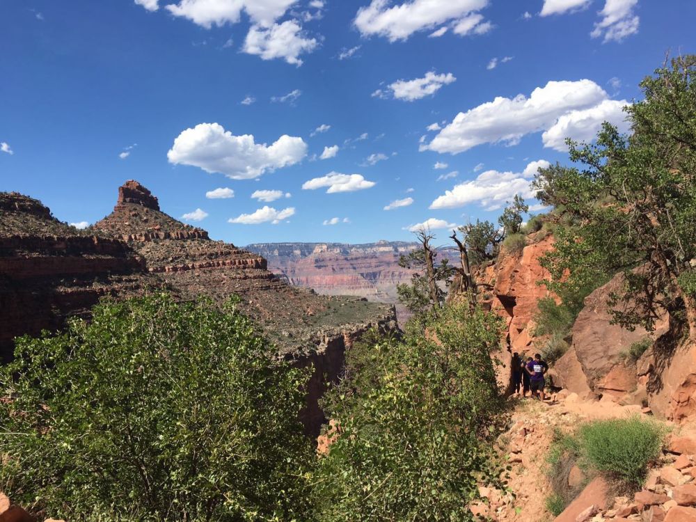 也是机缘巧合,今年4月初我与一位30多年未见,现定居加拿大的发小儿通过微信联系上了,欢喜之情不言而喻。我们聊到自己平时的爱好,她喜欢登山健行,而这也正是我多年一直坚持的。我正想着也许今后我们可以找机会一起去登山,就听见她说她计划下月与先生和弟弟一起去大峡谷徒步穿越,正设法预定谷底Phantom Ranch(幻影牧场)的床位。我一听立马来了精神,还等什么呀!多有意义的旅程啊,我怎么也得掺和进来呀!