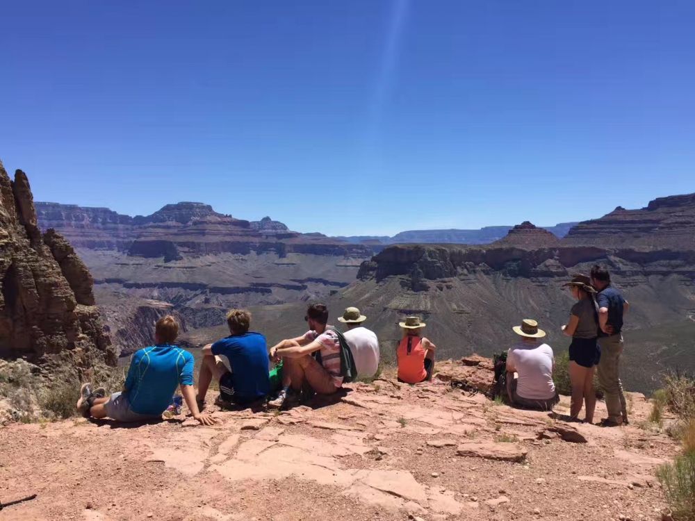 5月下旬大峡谷已经非常炎热,沿途几乎没有树荫,路上又没有供水站,这种情况下带足饮用水至关重要。我们大家在下Trail之前都把各自的水囊灌满。