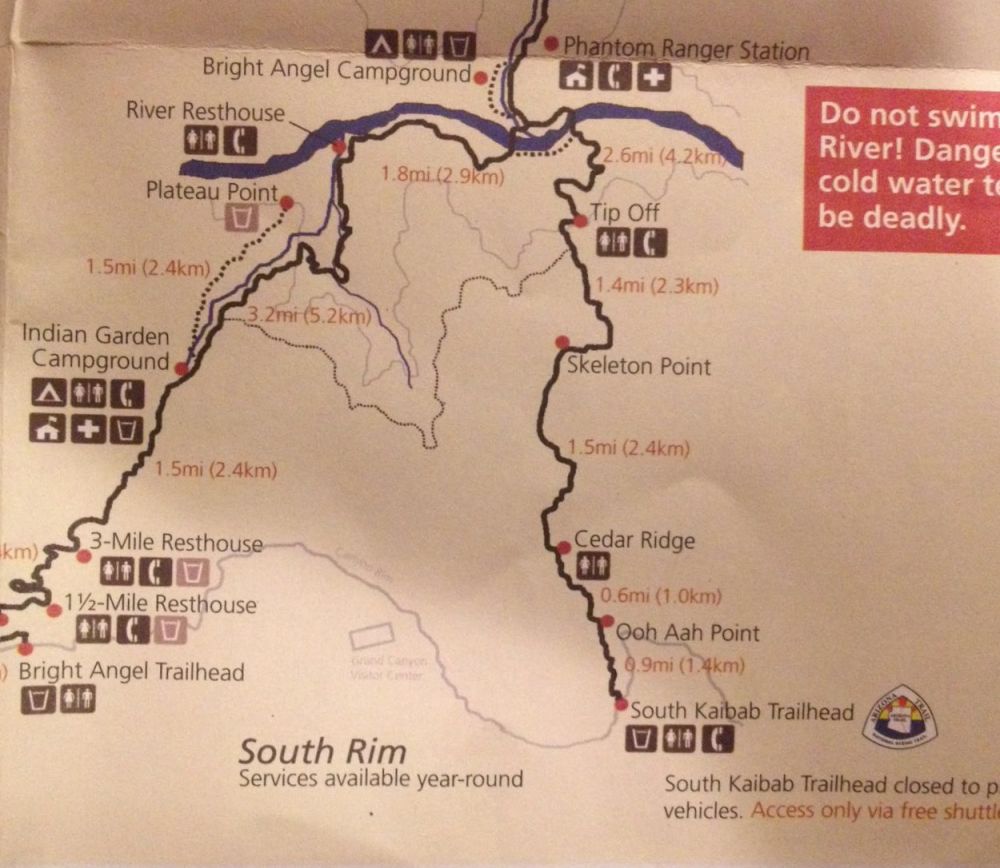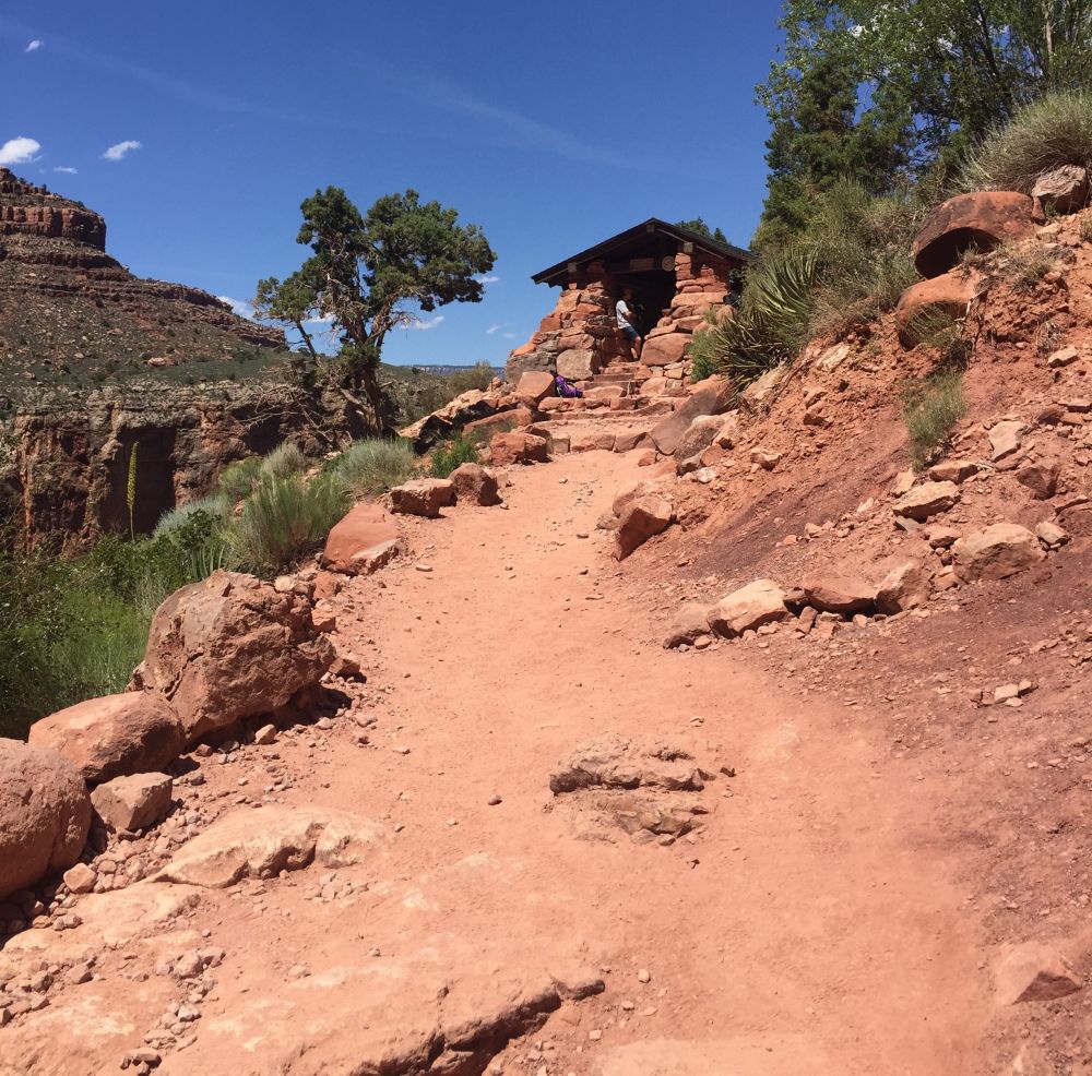 光明天使小径上支持远足的设施非常完备。这一路上我们已经经过了两个休息站(Resthouse),用卫生间,加水都很方便。昨天走的Kaibab步道没有供水,所以我们的背包才那么重。