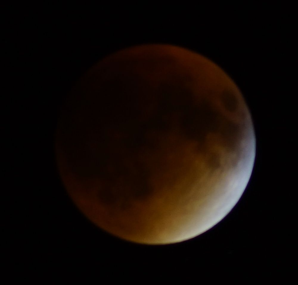 10点15分。最初是F8,1/500, ISO200。月亮亮度太低了,看不到红月。于是把快门调到8秒,终于看到诱人的红色了!