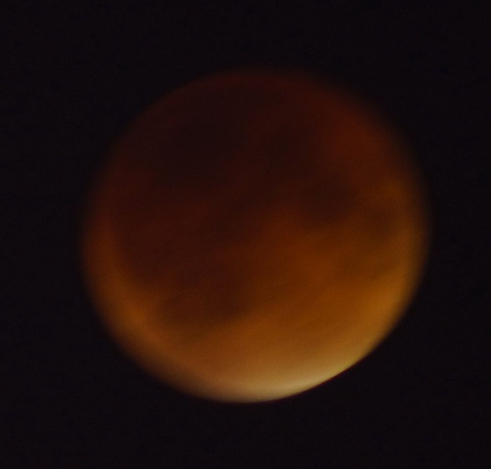 父亲说美中不足是很深刻的。他采用了自动聚焦,在亮月时没有问题。但到了月亮几乎被遮住时,月亮呈暗红色,相机无法自动聚焦。另外就是要尽量使用大光圈,以便降低曝光时间。他采用的是F8 8秒,这也是出现模糊的原因之一。